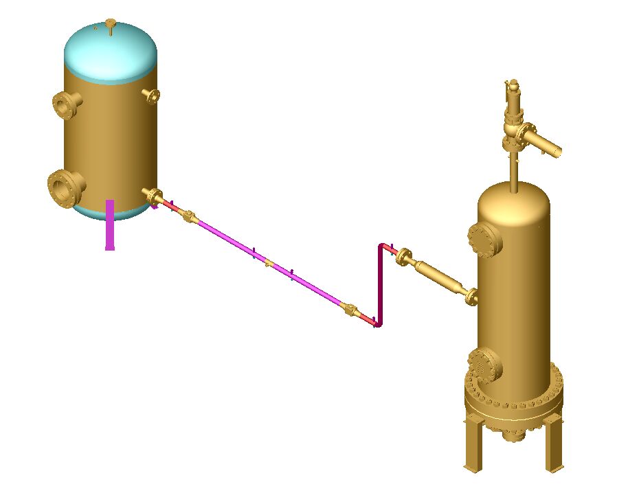 Four pipelines are attached to the RPV tank. The depressurization line, where a safety valve is installed, connects the upper part of the tank to the atmosphere. Also the manual depressurization line is connected to the top of the tank. The blowdown line is connected to the lower flange of the tank. The draining and the feed water lines are located in the bottom of the tank.